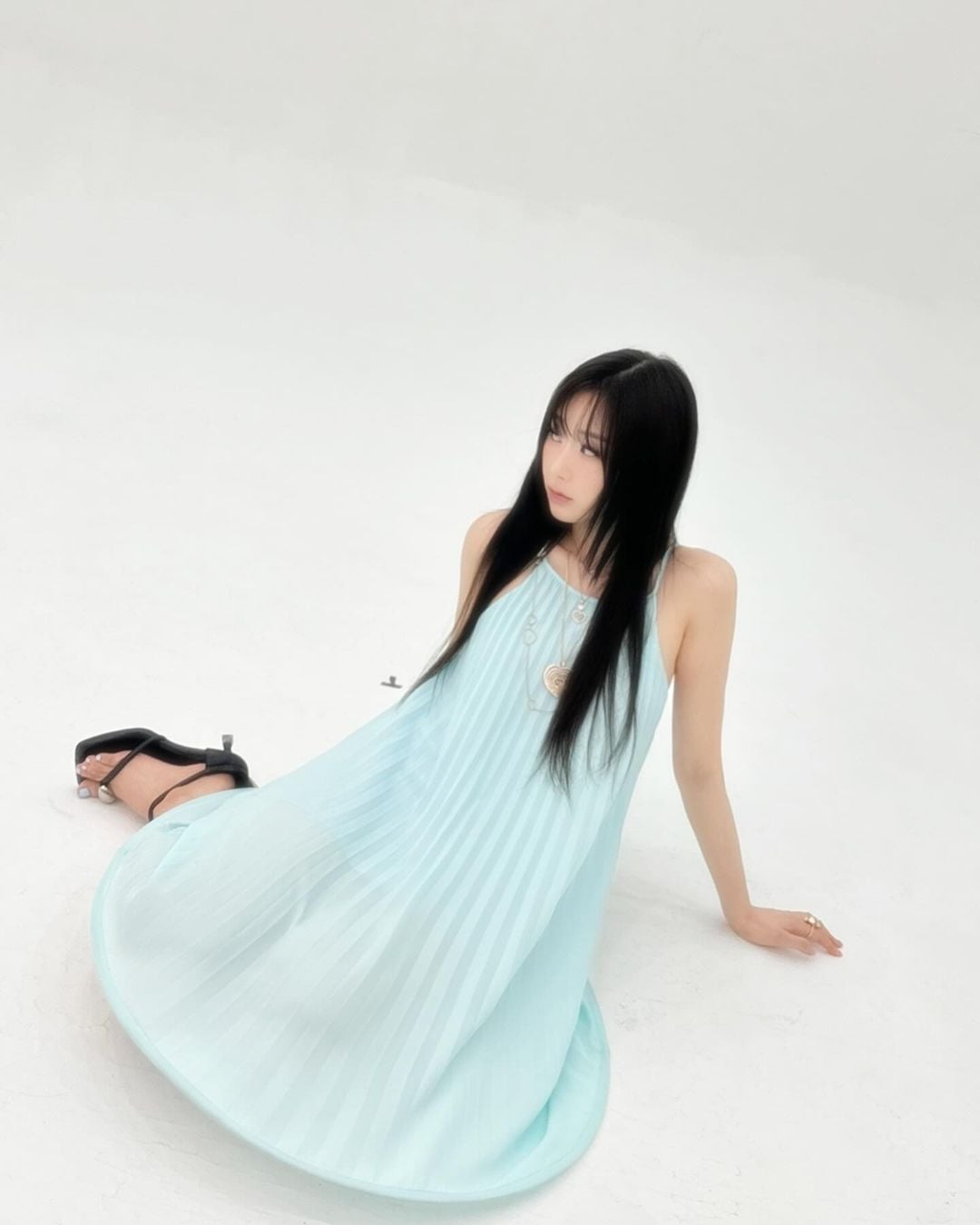 She looks stunning (as always) and the pastel blue suits her so well!