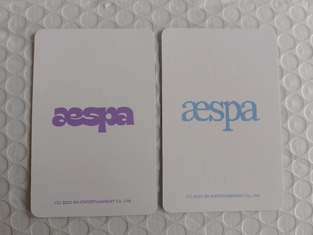 Hello Aespa fans! I received these two pcs in a mystery pack, and while I enjoy Aespa's music, I'm not well versed in their eras/photocards. Can someone tell me where these are from? Or if they're official or fanmade? Thanks a lot!