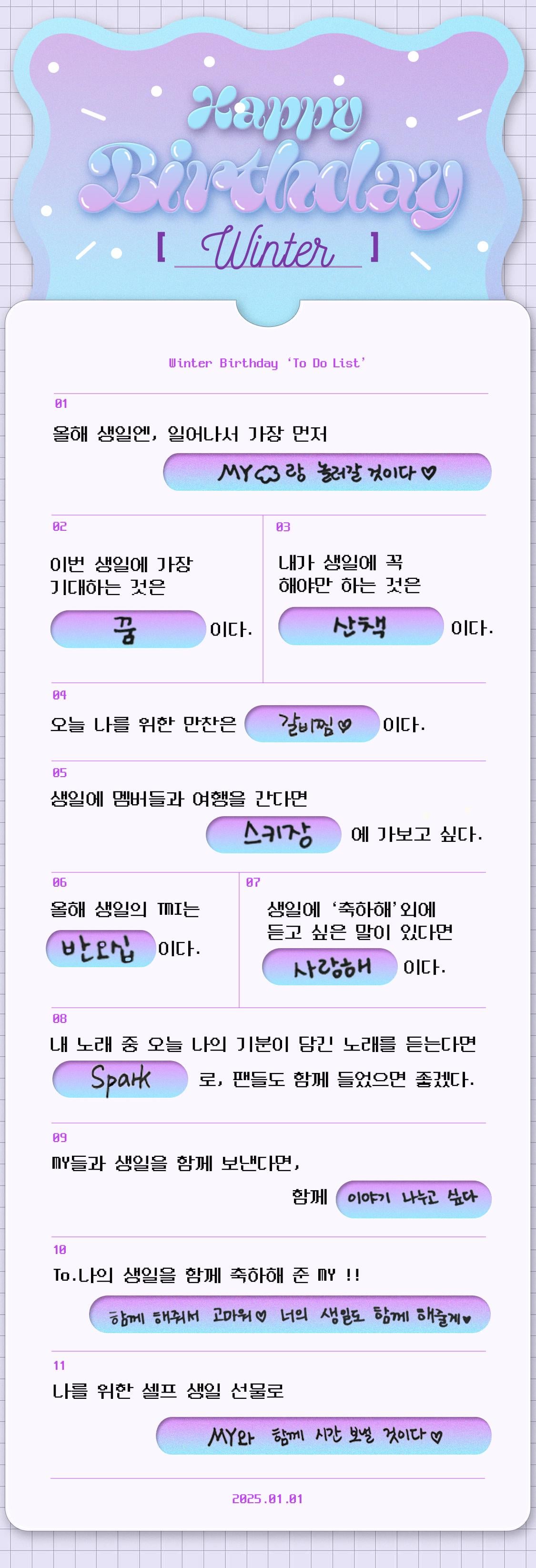 2025-01-07 share 250107 aespa Weverse Update with Winter – [For. MY] 1/1 WINTER BIRTHDAY TO-DO LIST ๐