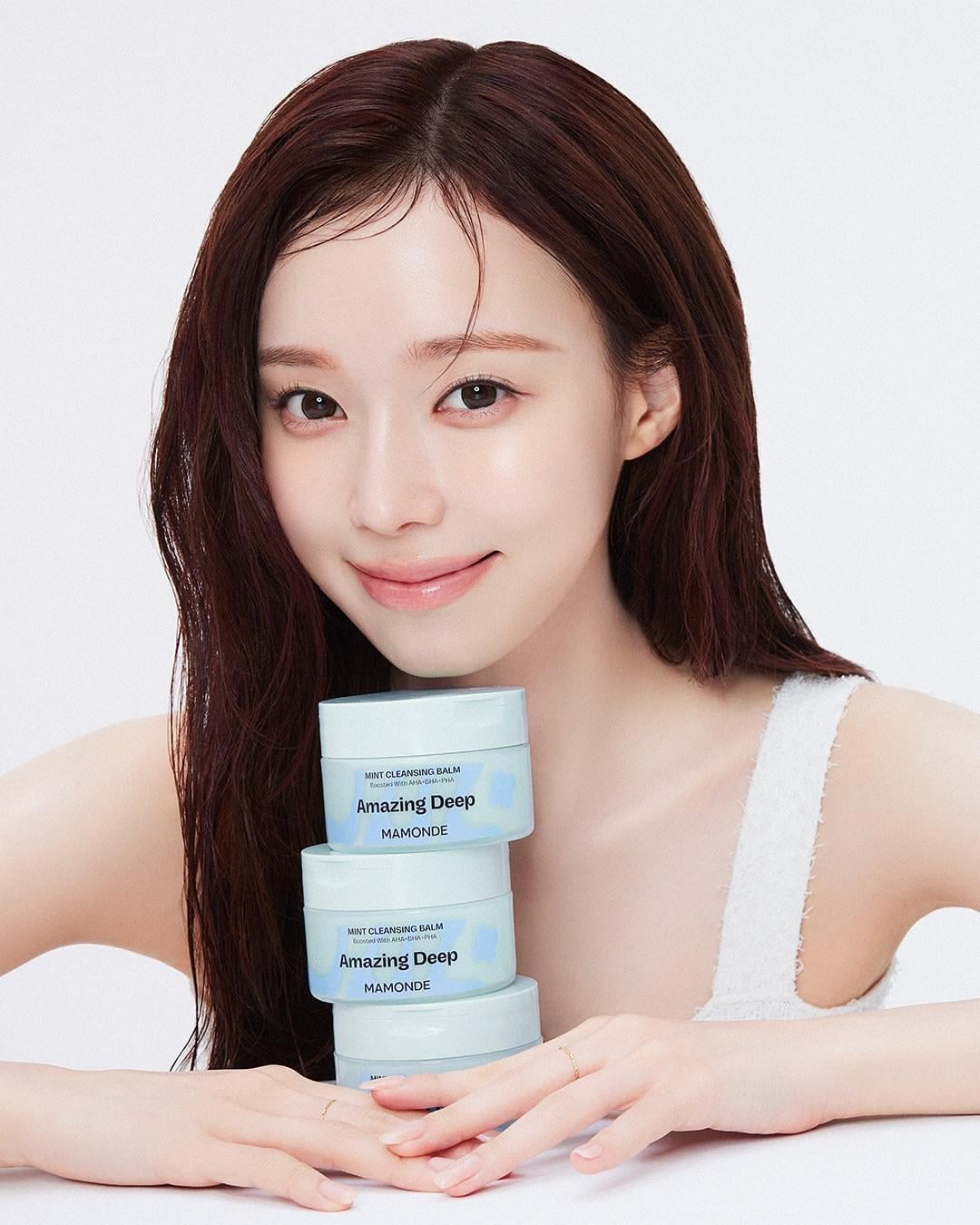 [source](https://www.instagram.com/p/DK0s0K6z0rN/)>Cleansing Balm with WINTER (@imwinter) – More Cuts Revealed 📸>From pores, sebum, and dead skin to even mascara—take it all off in one step with Mamonde #MintCleansingBalm.>With its soft sherbet balm texture, it‘s gentle on the eyes and leaves a fresh, soothing finish ✨>Enjoy quick cleansing for both makeup and sebum with the Mint Cleansing Balm—now available at your nearest Olive Young