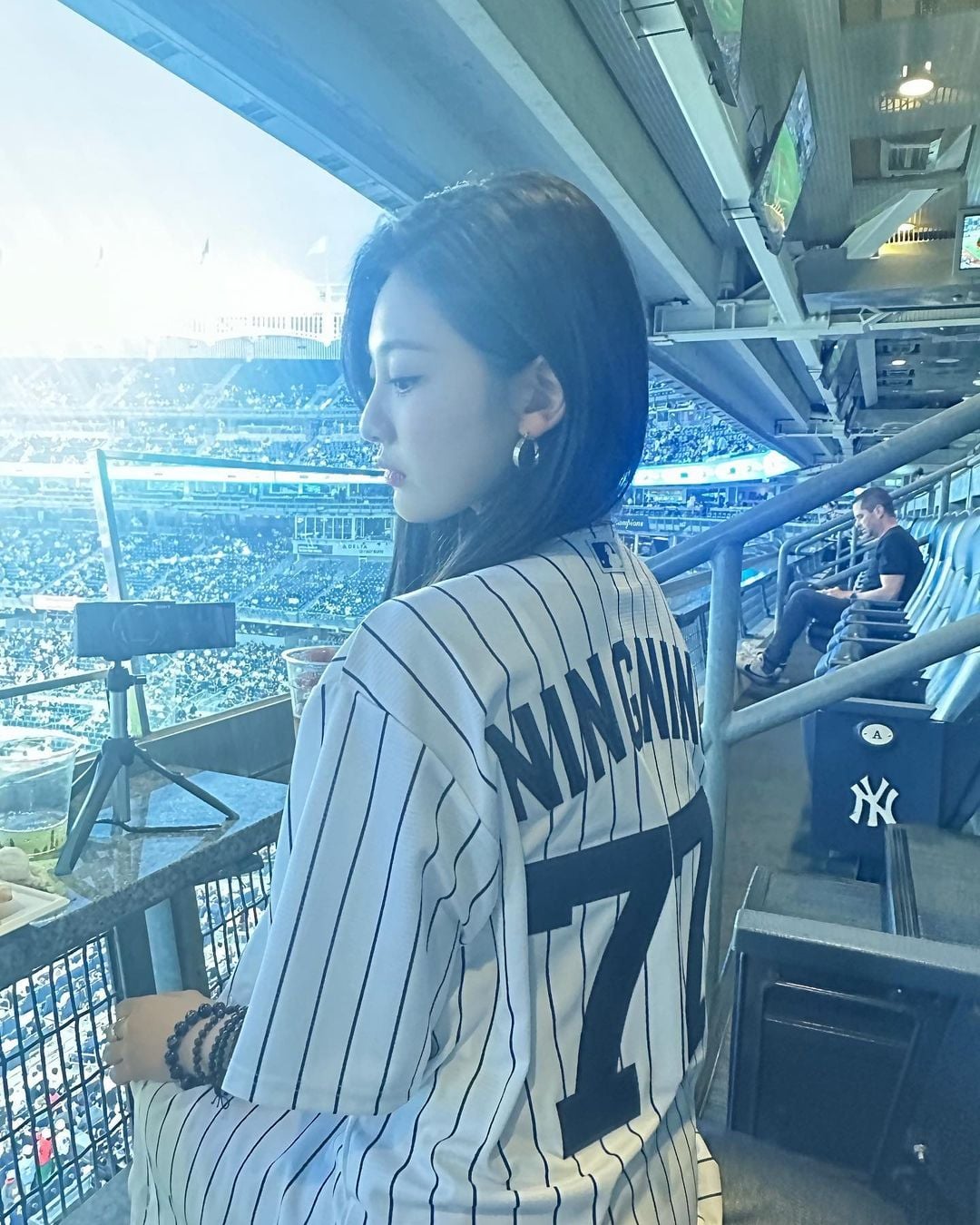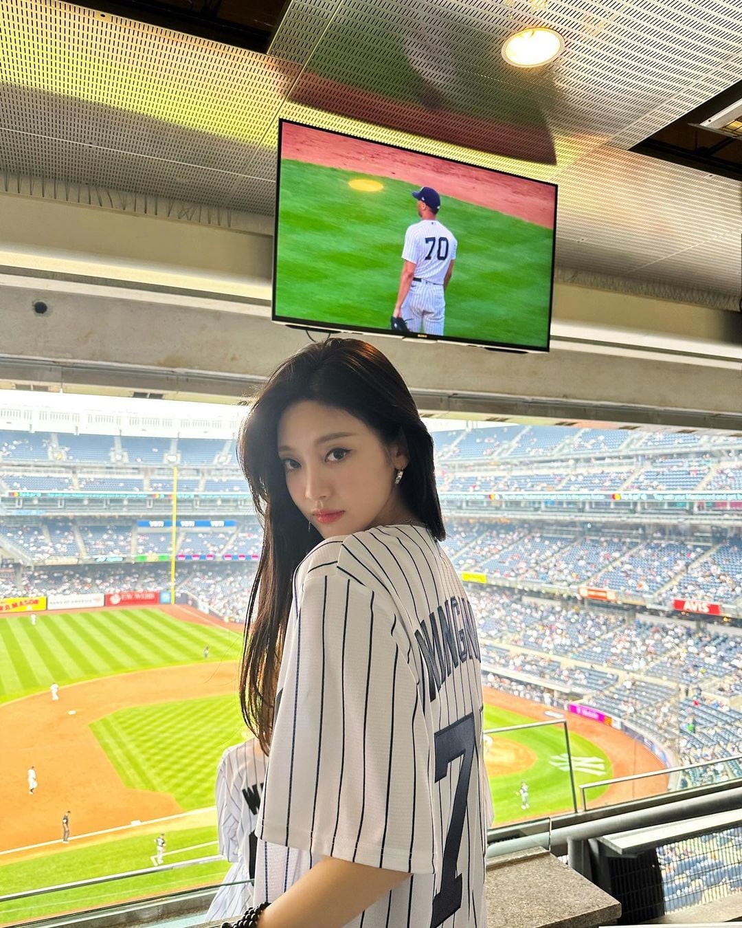 [Source ](https://www.instagram.com/p/CtRbm05A-rJ/?igshid=MzRlODBiNWFlZA==)>Thank you so much for inviting us!:))Go Yankees!!!⚾️🤍[Bonus Videos](https://imgur.com/a/28aznIW)=====She is so pretty and charming in any outfit. Love the little tribute to GiGi ❤️