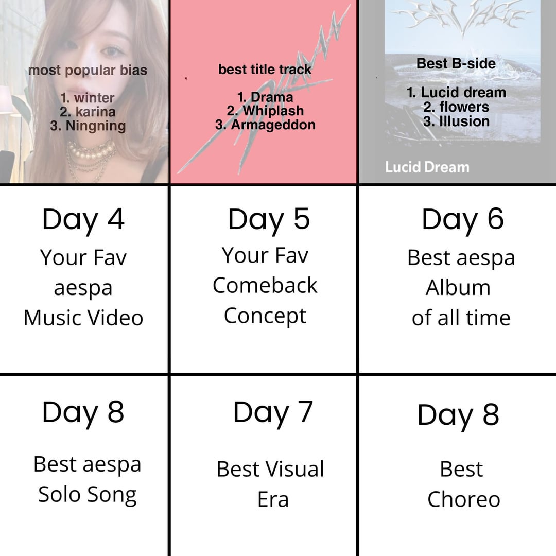2026-03-13 sharelucid dreams won ! for day 4, what's your fav aespa music video? I'll start, for me it's rich man!